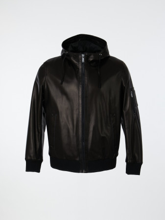 — Куртка мужская из натуральной кожи с капюшоном