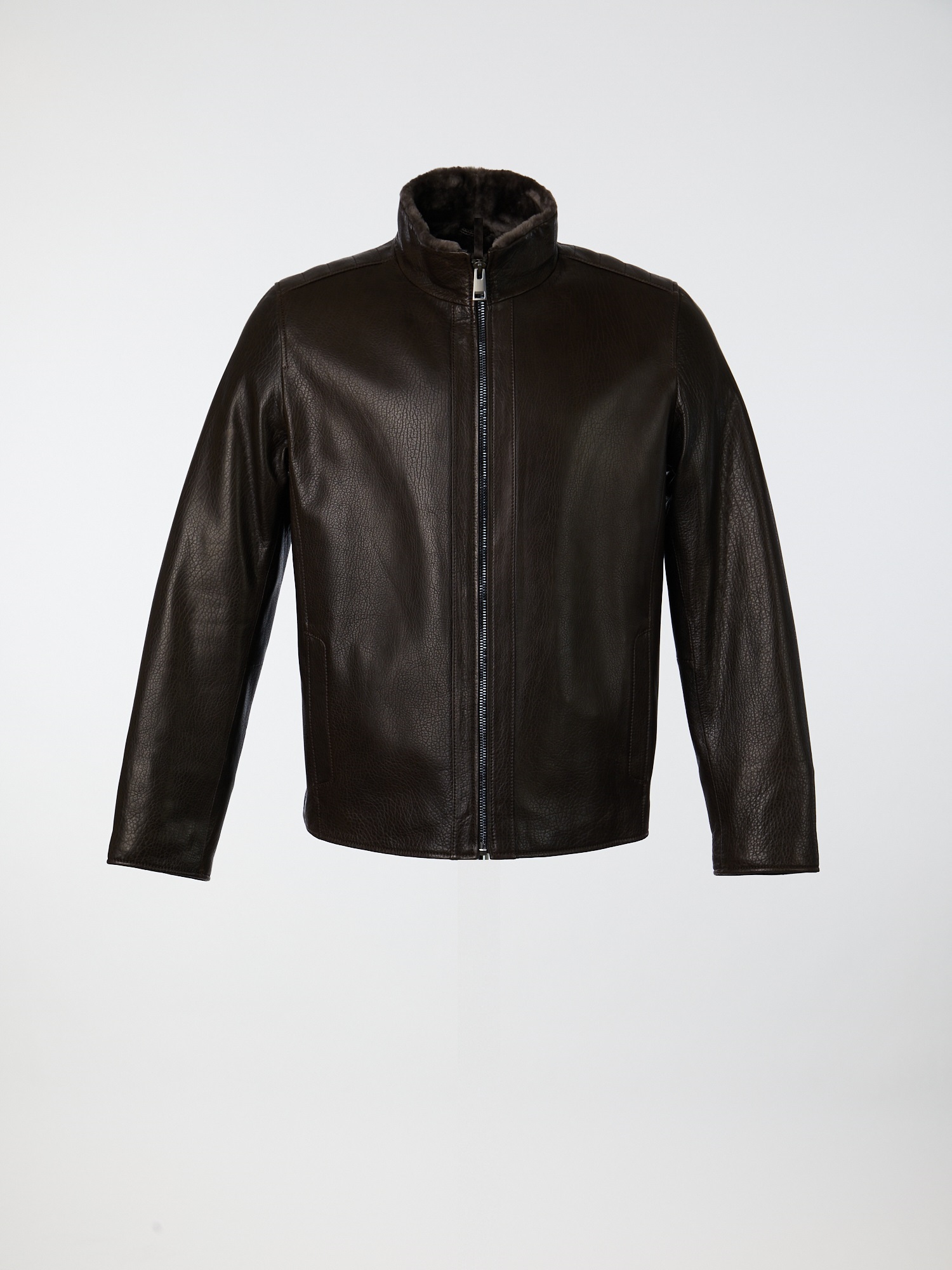 Укороченная куртка из натуральной кожи с утеплителем меховой овчиной. Модель прямого силуэта с воторником стойкой и фронтальной застежкой на металлическую молнию с внутренней ветрозащитной планкой. Втачные рукава регулируются по длине с помощью меховой подгибки. Прорезные карманы с листочкой на магнитной застежке.