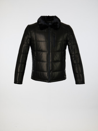 —Кожаный пуховик с воротником из норки