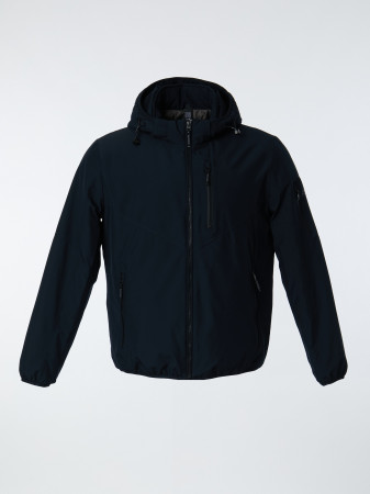 Укороченная мужская куртка со съёмным, регулируемым по объёму капюшоном. Воротник-стойка. Рукав втачной присобран на резинку. Изделие застёгивается на фронтальную тракторную молнию. Модель дополнена прорезными нагрудным и боковыми карманами, которые фиксируются молниями. Для мелочей предусмотрено два внутренних кармана. Низ куртки оформлен эластичной трикотажной резинкой. Внутренняя горизонтальная стёжка помогает синтетическому наполнителю равномерно распределиться. Качественная фурнитура и функциональный карман на левом рукаве завершают дизайн изделия.