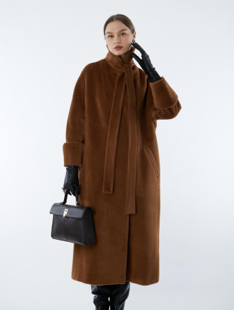 Классическое двубортное пальто премиум класса из высококачественной шерсти альпаки. Модель прямого силуэта с английским воротником, глубокой шлицей и застежкой на потайные кнопки. Цельнокроеный рукав регулируется по длине с помощью подгибки. Прорезные карманы с листочкой имеют боковой вход. Наличие мягкого пояса позволит выгодно подчеркнуть талию. На модели в качестве отделки используется декоративная строчка "пунто".