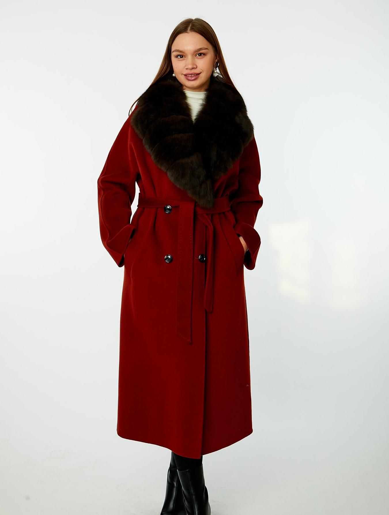 Классическое пальто из высококачественной кашемировой ткани премиум класса с двусторонним эффектом. Двубортная модель прямого силуэта с английским воротником и съемным мехом канадского песца. Застежка на пуговицы. Цельнокроенные рукава регулируются по длине с помощью подгибки. Прорезные карманы с листочкой. На спинке изделия по среднему шву расположена шлица. В комплекте имеется пояс, который выгодно подчеркнет талию. Дополняет дизайн изделия декоративная строчка "пунто".