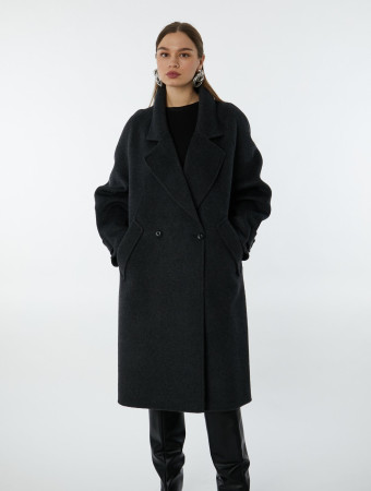 Демисезонное пальто из натуральной австралийской шерсти премиум класса с двусторонним эффектом. Модель прямого силуэта с английским воротником и двубортной застежкой на пуговицы. Рукава регланом с заниженной проймой и защипом по краю, который фиксируется патой на пуговицу. Прорезные карманы расположены в рельефе и имеют декоративный клапан.