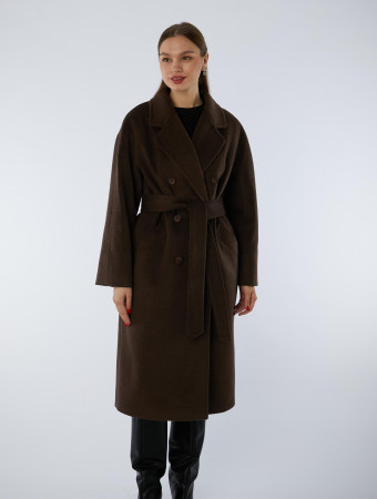 Пальто полушерстяное удлинённое с английским воротником и поясом
