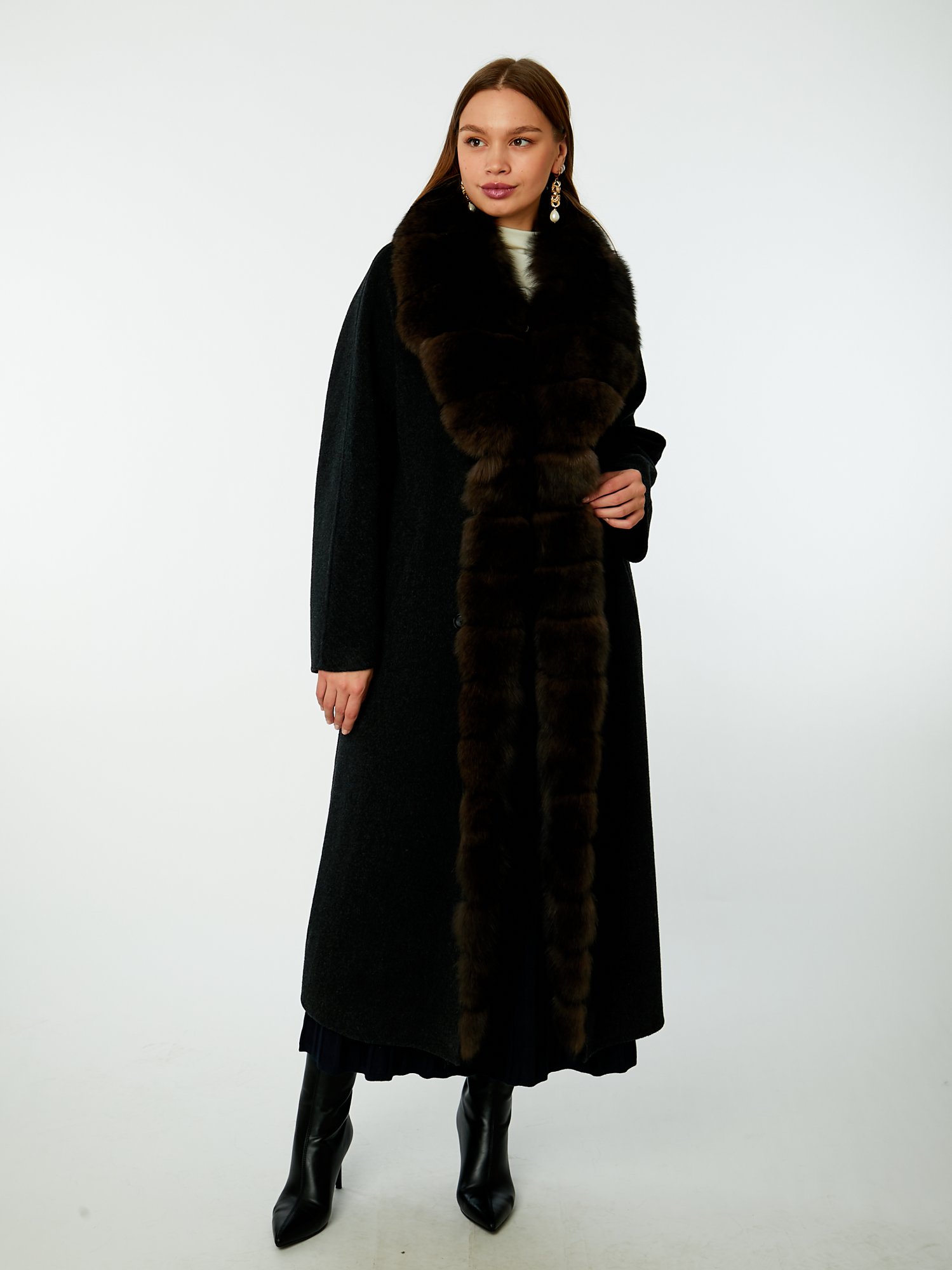 Стильное пальто из высококачественной кашемировой ткани премиум класса с двусторонним эффектом. Двубортная модель прямого силуэта с английским воротником и съемным мехом канадского песца. Застежка на пуговицы и внутренние навесные кнопки. Цельнокроенные рукава регулируются по длинне с помощью подгибки. Прорезные карманы с листочкой. На спинке изделия по среднему шву расположена шлица. В комплекте имеется пояс, который выгодно подчеркнет талию.