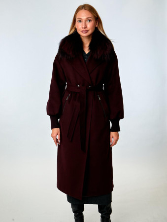 Классическое двубортное пальто из ткани с высоким содержанием шерсти на подкладе с утеплителем. Модель прямого силуэта с английским воротником и съемным мехом крашеной чернобурой лисицы. Двубортная застежка на металлические пуговицы. Спущенная линия плеча и втачные рукава с трикотажной манжетой. Прорезные карманы с листочкой декорированы металлической молнией. Боковые швы дополнены функциональной молнией, что дает дополнительную свободу при движении. В комплекте имеется пояс, который выгодно подчеркнет талию. Дополняет дизайн изделия декоративная строчка "пунто".