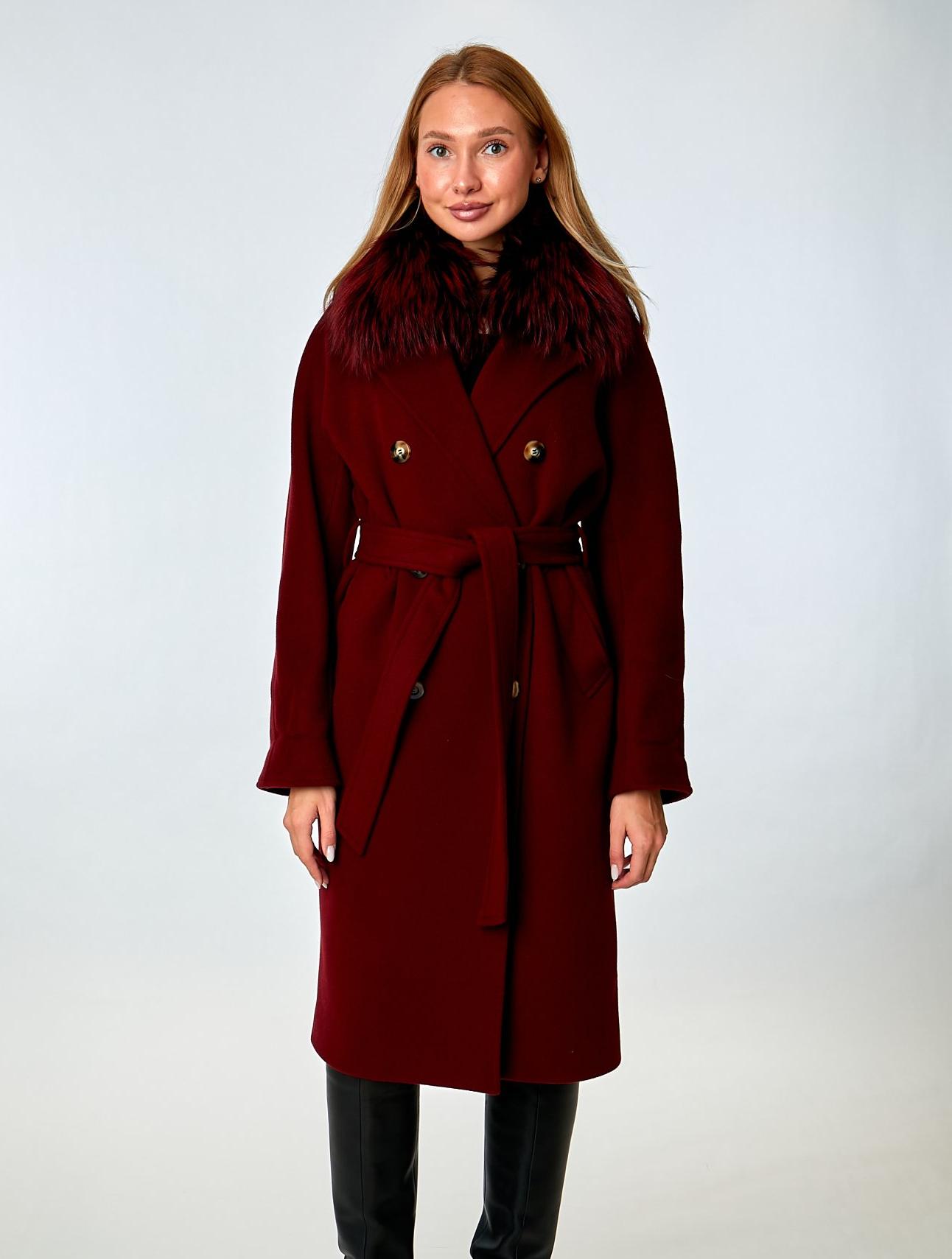 Классическое двубортное пальто из шерстяной ткани с добавлением кашемира на подкладе. Модель прямого силуэта с английским воротником и съемным мехом крашеной чернобурой лисицы. Двубортная застежка на пуговицы. Цельнокроенные рукава регулируются по длинне с помощью подгибки. Прорезные карманы с широкой листочкой и боковым входом. В комплекте имеется пояс, который выгодно подчеркнет талию. Дополняет дизайн изделия декоративная строчка "пунто".