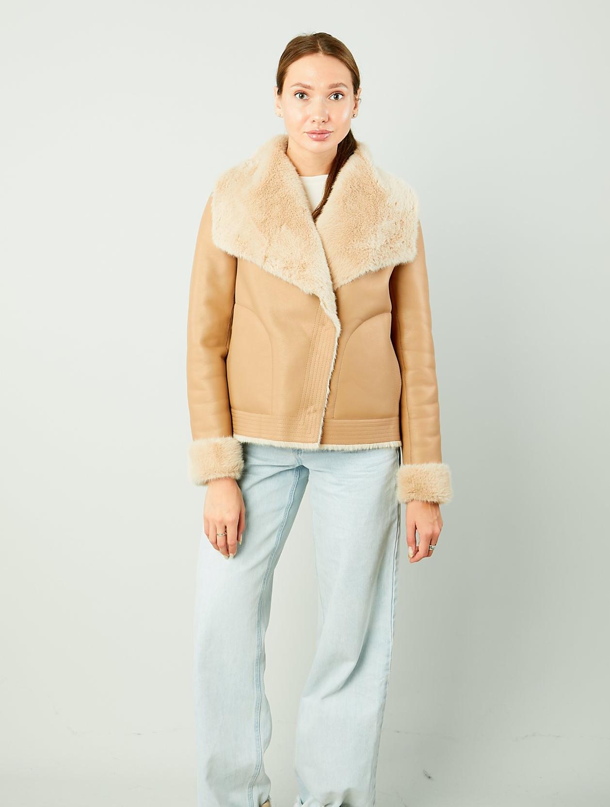 Стильная экодубленка жакетного типа с воротником апаш, который фиксируется с помощью пуговицы. Модель прямого силуэта с ассиметричной застежкой на пришивные кнопки. Втачные рукава регулируются по длинне с помощью подгибки. Прорезные карманы с эффектом накладных с боковым входом. Высококачественное сырье с защитным покрытием от влаги и пыли. Завершает дизайн изделия декоративная строчка по краям рукавов, низу и бортам.