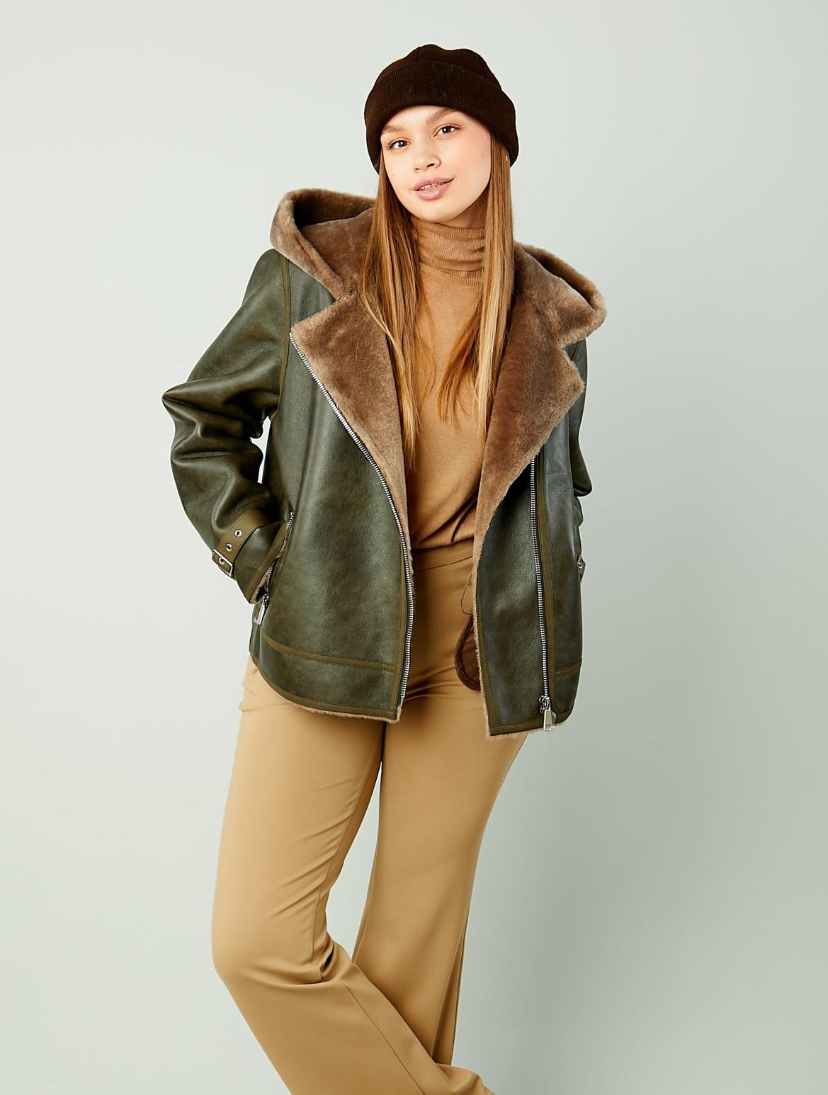 Стильная укороченная экодубленка-пилот с теплым капюшоном — это идеальное сочетание комфорта, практичности и современного дизайна. Модель выполнена в прямом силуэте с асимметричной застежкой на металлическую молнию, дополненной внутренней ветрозащитной планкой для защиты от ветра и холода. Теплый капюшон обеспечит дополнительное тепло и защиту в непогоду. Втачные рукава украшены декоративными ремешками и окантовкой из экокожи, что придает образу особую изысканность. Практичные прорезные карманы с боковым входом и застежкой на молнию позволяют удобно хранить мелочи и сохраняют аккуратный внешний вид. Использование экологичных материалов делает эту дубленку не только стильной, но и экологически ответственной покупкой — надежной и долговечной в эксплуатации.ию.