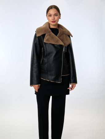 Укороченная экодубленка-косуха с защитным покрытием "силк" и английским воротником, который фиксируется с помощью пуговицы. Модель прямого силуэта с ассиметричной застежкой на молнию. Втачные рукава с функциональной молнией, длинна которых регулируется с помощью подгибки. Завышеные прорезные карманы с застежкой на молнию и боковым входом. В комплекте имеется мягкий ремень, с помощью которого можно выгодно подчеркнуть талию. Дополняет дизайн изделия ассиметричная правая полочка.