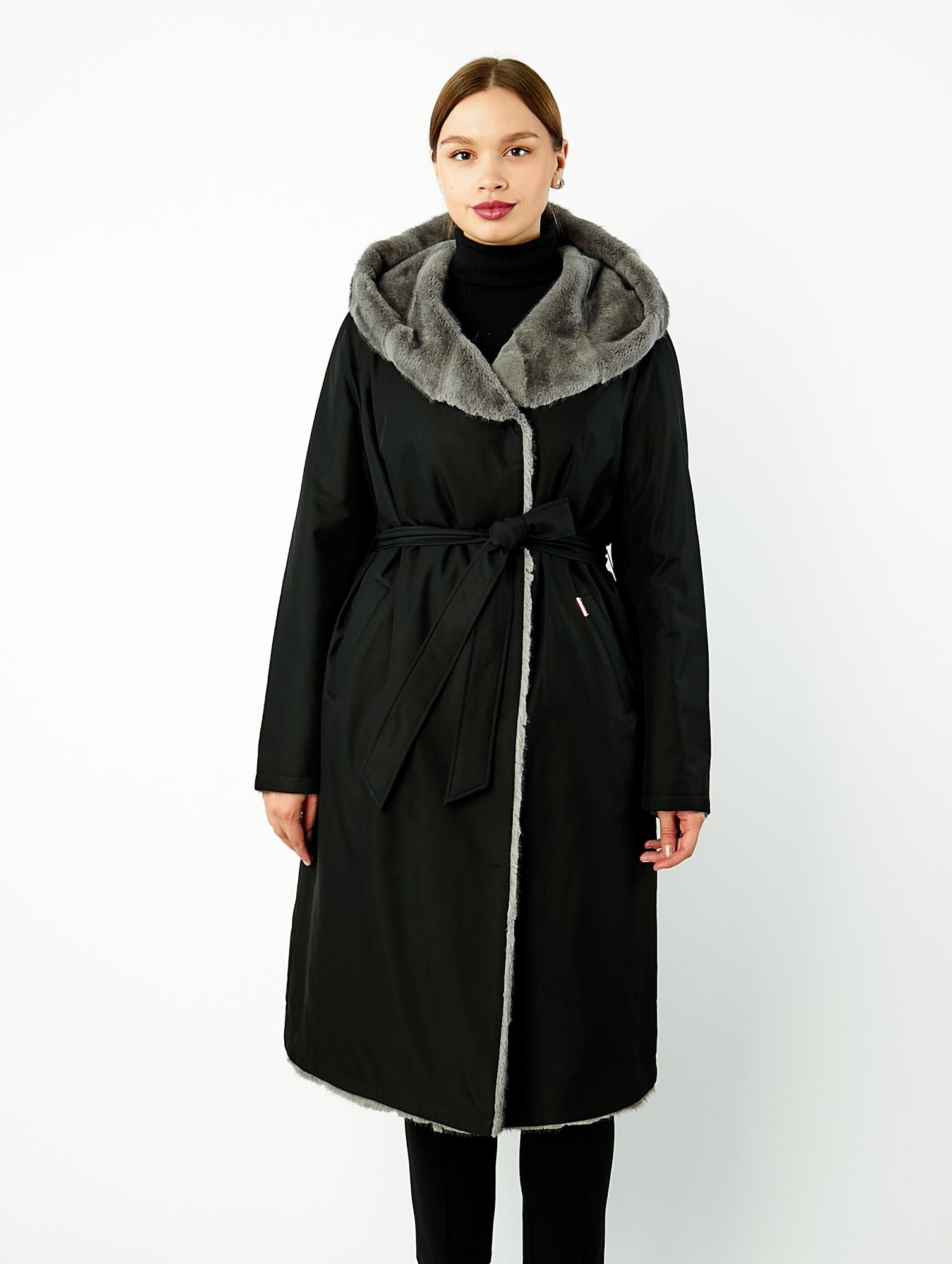 —Двустороннее зимнее пальто с капюшоном и поясом