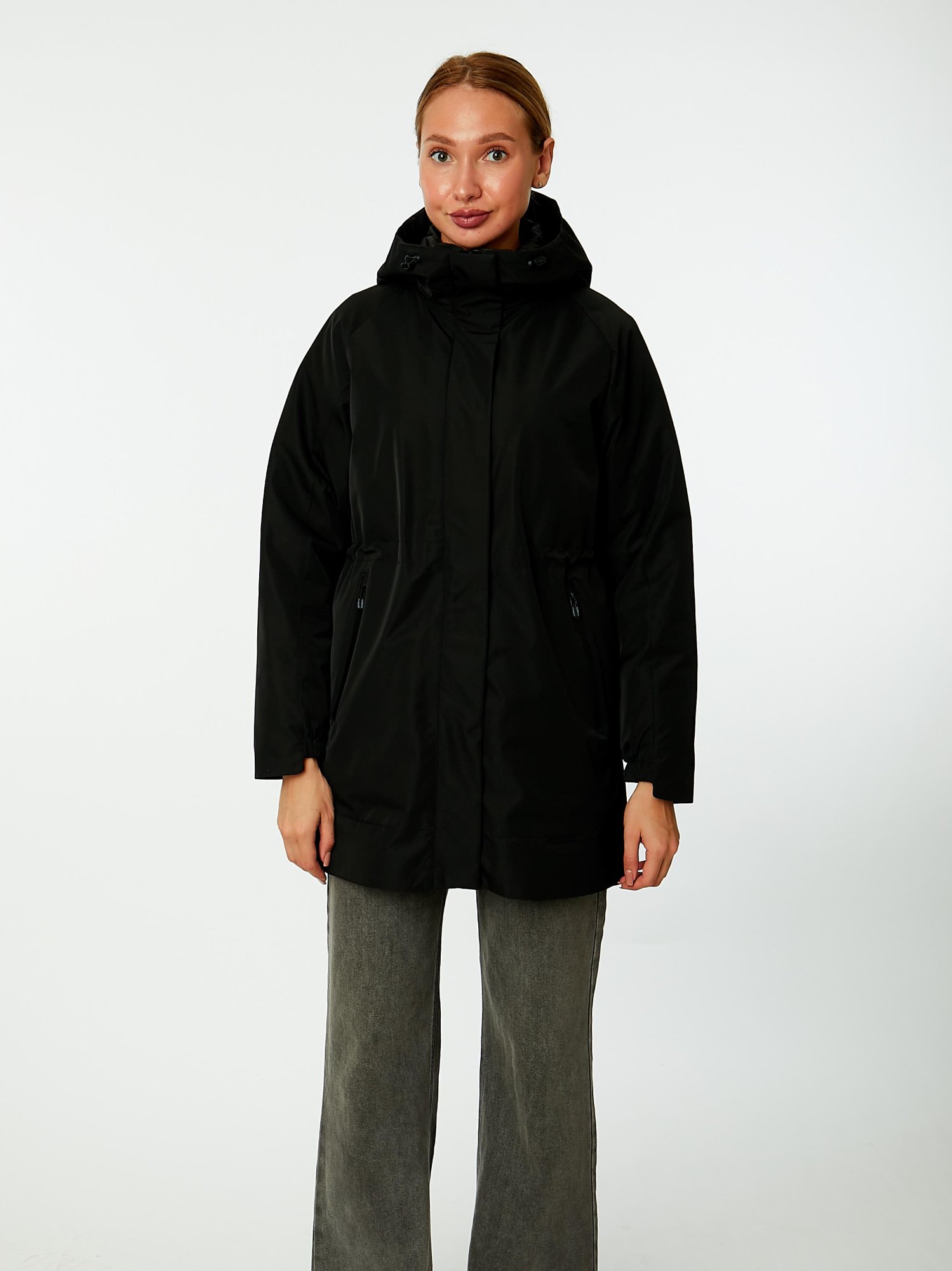 Современная женская куртка 2 в 1 прямого силуэта с регулируемым по объёму капюшоном. Модель застёгивается на молнию, прикрытую ветрозащитной планкой с потайными кнопками. Рукав втачной. Боковые карманы фиксируются при помощи молний. На спинке изделия расположена отлетная кокетка с буквенным принтом. Ширина по линии талии регулируется потайной кулиской. Куртка утеплена синтетическим наполнителем.