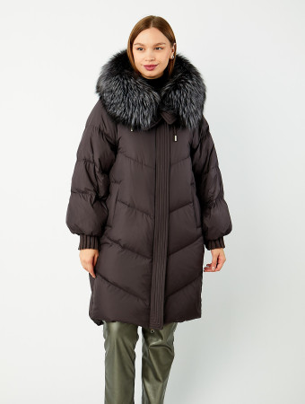 —Удлиненный пуховик с капюшоном и отделкой из лисы