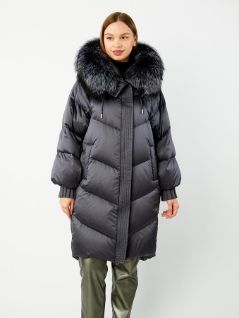 —Удлиненный пуховик с капюшоном и отделкой из лисы