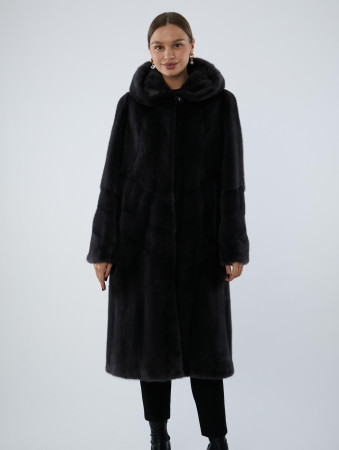 Шуба из меха норки с капюшоном