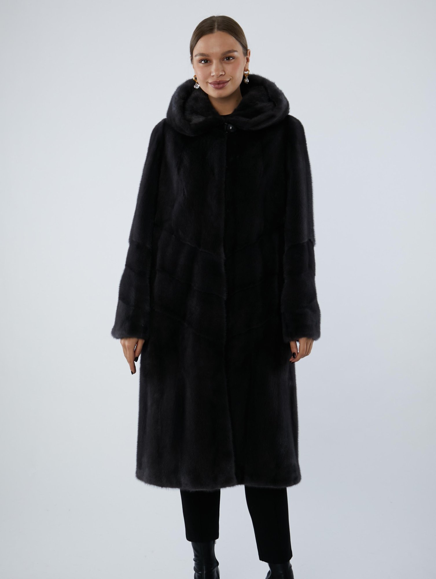 —Шуба из меха норки с капюшоном