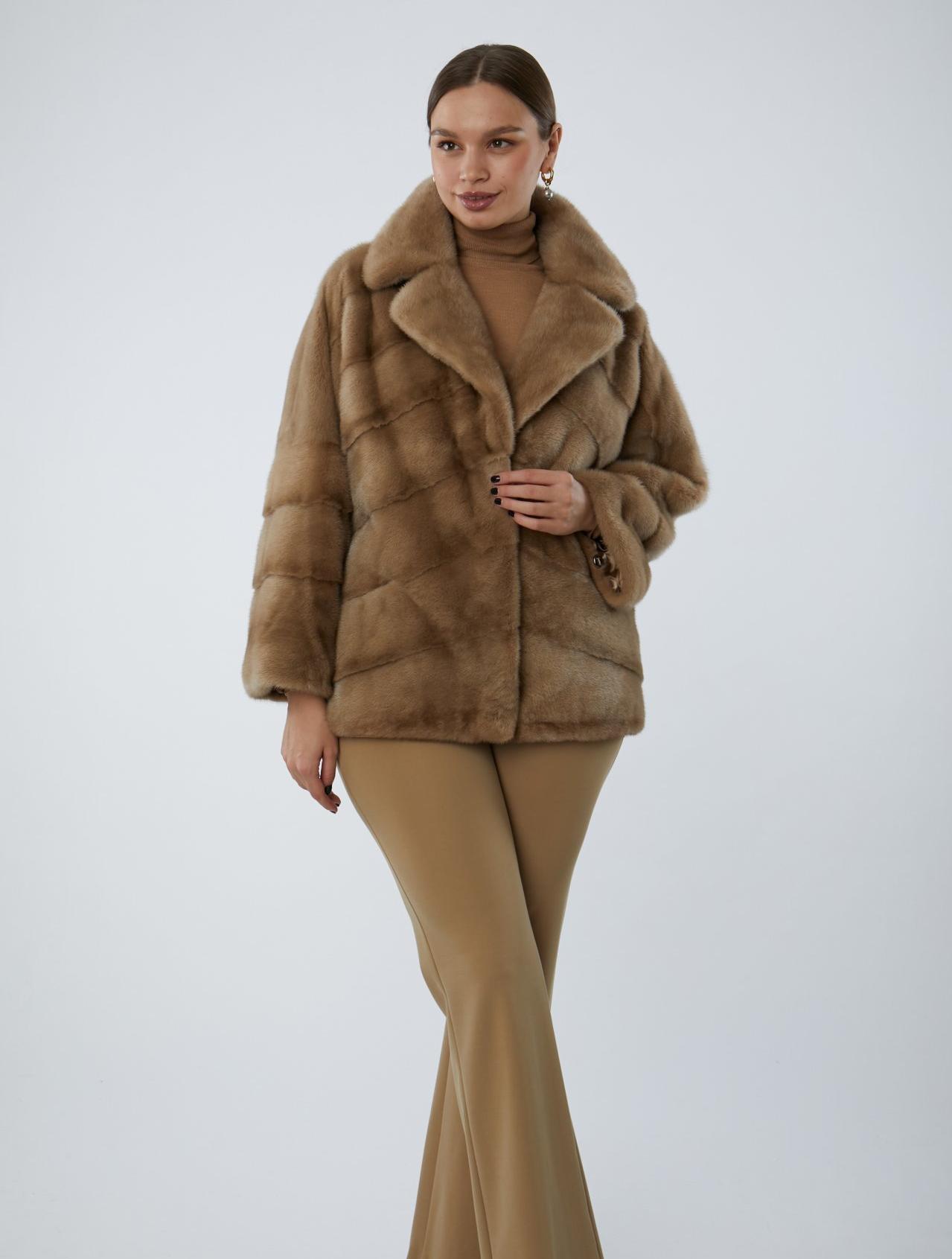 Укороченная шуба из меха норки с английским воротником