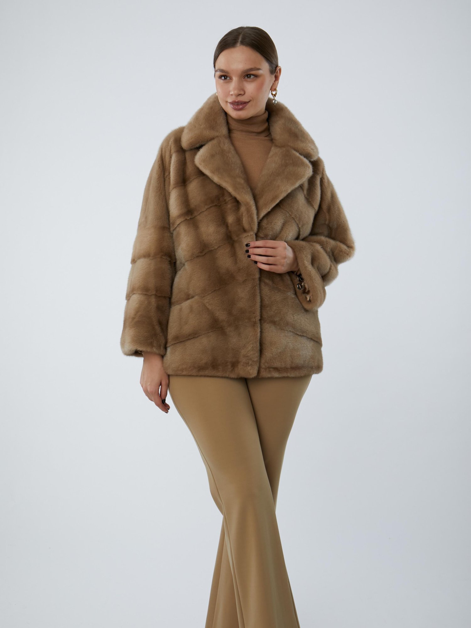Укороченная шуба из меха норки с английским воротником. Модель прямого силуэта с поперечной раскладкой меха и фронтальной застежкой на шубные крючки. Спущенная линия плеча и втачные рукава с регулируемой кулиской. Прорезные карманы расположены горизонтально и имеют магнитную застежку. Удобные функциональные кулиски позволят менять силуэт.