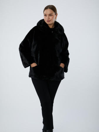 Укороченная шуба из меха норки с теплым капюшоном в форме капора. Модель прямого силуэта с поперечной раскладкой меха и фронтальной застежкой на шубные крючки. Спущенная линия плеча и втачные рукава с регулируемой кулисой. Прорезные карманы расположены горизонтально и имеют магнитную застежку. Удобные функциональные кулисы позволят менять силуэт.