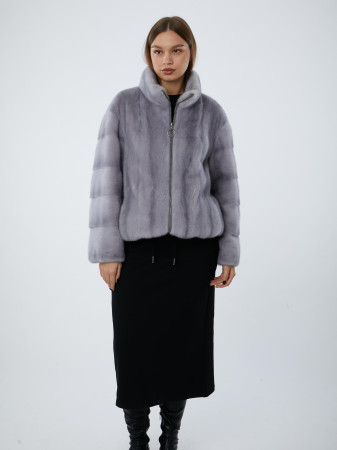 Укороченная шуба из меха норки с воротником стойкой. Модель прямого силуэта с фронтальной застежкой на металлическую молнию. Спущенная линия плеча и втачные рукава с поперечной раскладкой меха регулируются по объему с помощью кулисы. Прорезные карманы расположены вертикально с боковым входом. Удобные функциональные кулисы позволят менять силуэт.